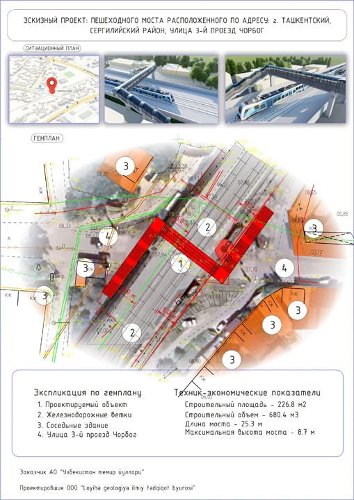 Проект пешеходных переходов и путепроводов на территории железнодорожной станции высокоскоростных пассажирских поездов Рахимова ПК1 (3377 км)