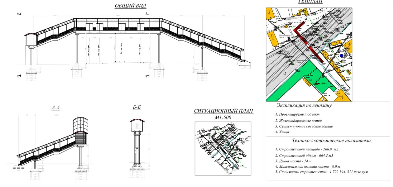 Цель проекта – проектирование безопасных пешеходных переходов и путепроводов на территории станции Яккабаг и подготовка всей технической документации.