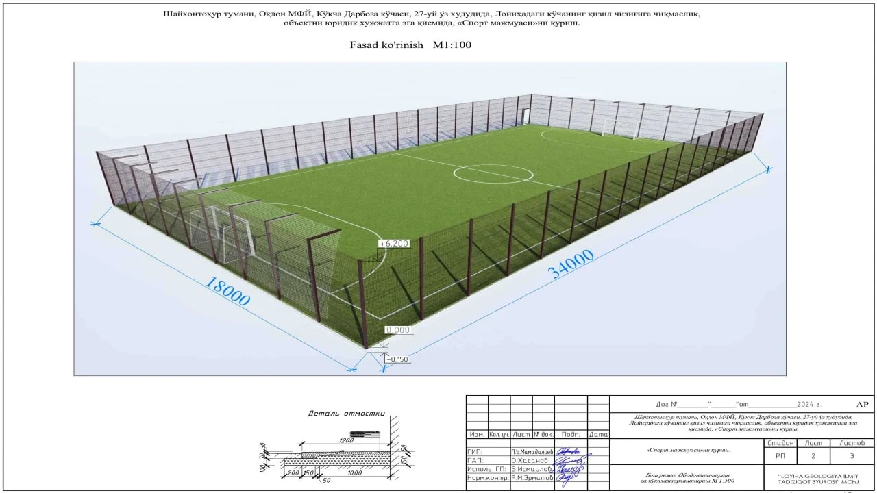 Полное описание проекта: Объект: Строительство современного «Спортивного комплекса» (стадиона) на территории Государственного учреждения «Jismoniy tarbiya va sport bo‘yicha mutaxassislarni qayta